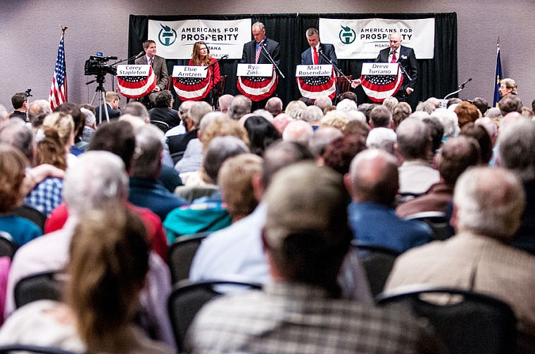 The debate, sponsored by Americans for Prosperity-Montana, focused on economic issues and it attracted more than 350 people to the Red Lion Inn. The candidates responded to questions from a panel of journalists that included Inter Lake editor Frank Miele.