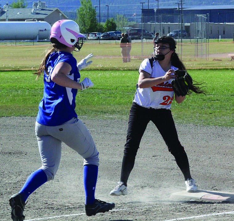 Danika Whitcomb covers first base for Plains in their game against Drummond.