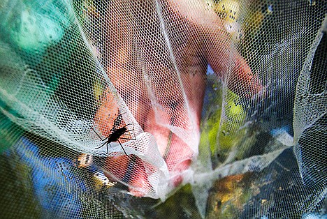 Under the canopy cover of tall trees, students swished up rocks and pebbles with nets to capture insects.