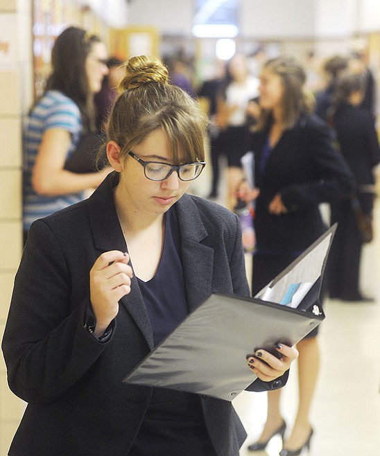 COLUMBIA FALLS freshman Jordyn King practices her speech before her presentation during the Kalispell Classic at Flathead High School on Saturday.