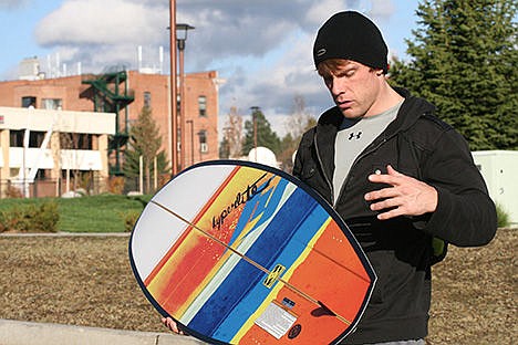 Sanchez, Brooks Goff of Coeur d'Alene and Eduardo Amorim, a study abroad student from Brazil, began their adventures in wakesurfing around the Fourth of July. The sport is a surfing and wakeboarding hybrid; wakesurfers are "dragged" behind the boat until it increases speed (about 11 miles per hour), then they get up on boards that are smaller than ocean surfboards, hold on to a thicker, shorter rope than is used in wakeboarding and let go once they establish balance on the wake.