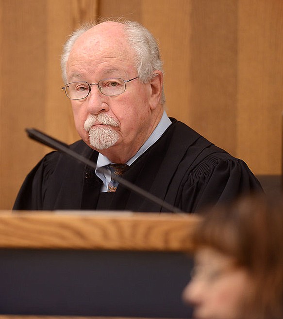 Flathead County District Court Judge Ted O. Lympus listens to attorneys on Thursday, November 6, at a hearing regarding Michelle Gentry's upcoming trial. (Brenda Ahearn/Daily Inter Lake)