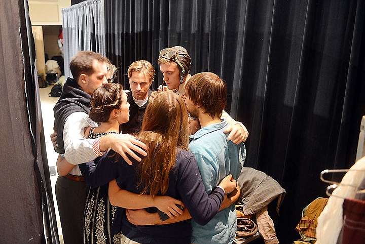 The cast of A Midsummer Night's Dream gathers together backstage just before the start of the show on Friday, November 7, at Kalispell Middle School. (Brenda Ahearn/Daily Inter Lake)