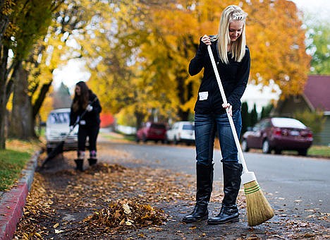 COEUR d'ALENE - Rhegan Humphrey grabbed a broom and began sweeping wet leaves off the street in front of Family Promise of North Idaho.