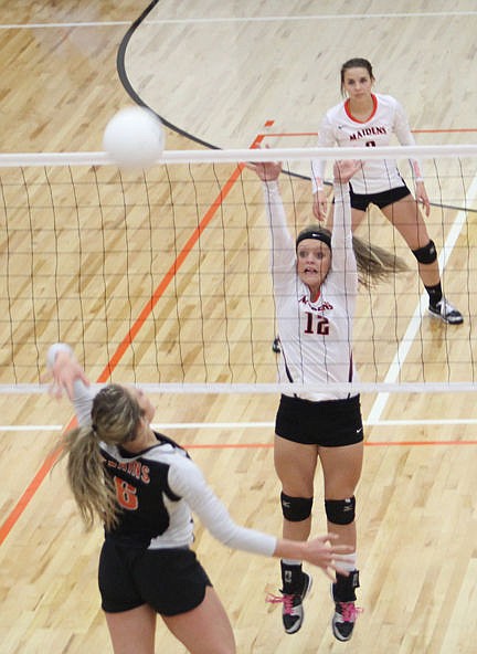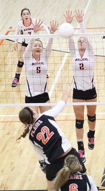 The quintet of Maiden seniors McKenzie Cates, Sydnee Clairmont, McKenzie Dulmes, Dani Richwine and Kendra Starkel collaborated on 27 kills, 6 aces, 8 blocks and three dozen digs in the final game of their prep volleyball careers. Jordyn Clairmont was in top form, dishing out 20 assists to set the table for the front row.