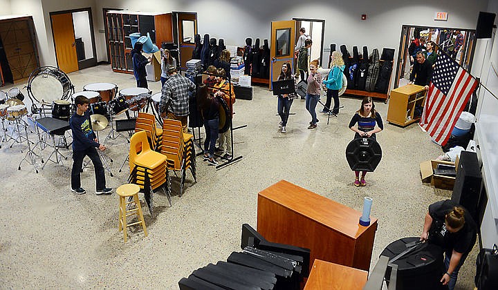 Orchestra students used their class on Monday, November 17, to move into the new Center for Applied Media Arts and Sciences at the Whitefish High School. The Orchestra/Band room is not yet complete. One of the upgrades still to come is soundproofing. Whitefish High School physics students will be designing the acoustic treatments and then Industrial Technology students will be building them. Principal Kerry Drown is excited about the project. "Students are going to be applying the lessons they are learning to a need within the school." (Brenda Ahearn/Daily Inter Lake)