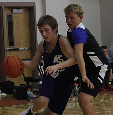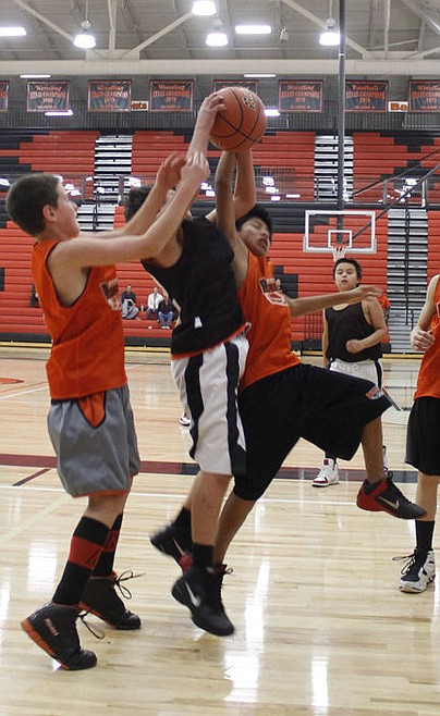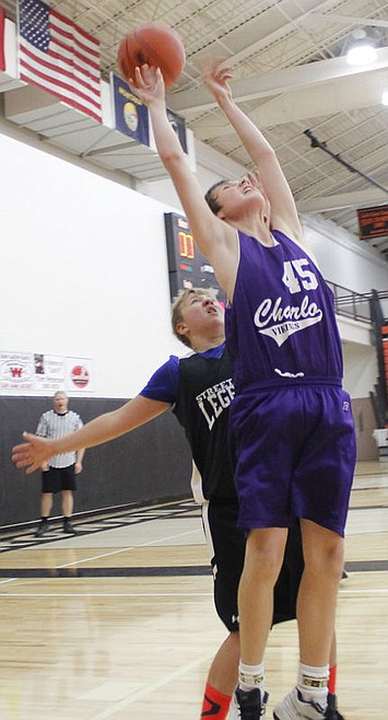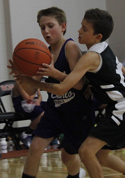 The results of Saturday’s Ronan Jamboree are: Results 1st place -- Ronan Chiefs, 2nd place -- Lolo Lumber Jacks, 3rd place -- Missoula Street Ball Legends, 4th place -- Charlo Vikings, 5th place -- Ronan Chiefs 2, 6th place -- Ronan Chiefs 3. Championship Game: Ronan 43 to Lolo 31. Consolation Game Street Ball Legends 36, Charlo Vikings 11. Above: Isaiah Nasewytewa stretches for a rebound. Below: Isaiah Silgen protects the ball from Isaiah Nasewytewa.