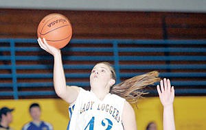 Junior Devon Gallagher lays it up for 2 in the first quarter Saturday evening vs. Whitefish. The Lady Loggers prevail 49-30. 12-21-13