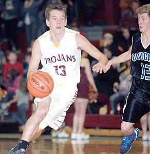 Lindsay Laws steals the ball from Kaitlyn Downey in first quarter vs. Troy, Jan. 2.