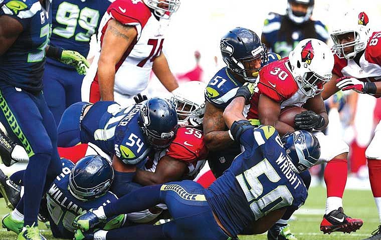Seattle missed plenty of chances to make the victory even more of a blowout. Wilson had a possible 49-yard touchdown run in the first half brought back on a downfield holding call. Lynch was corralled by Arizona's third-best rush defense and held to 39 yards on 15 carries, making it 21 straight games the Cardinals have not allowed a 100-yard rusher.