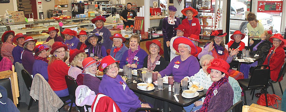 Members of the Polson Red Hatters gathered for their monthly feast at the Lake City Bakery. The Red Hat Society began as a result of a few women deciding to greet middle age with verve, humor and élan, according to the website. Initially started as a social organization for women age 50 and over, The Red Hat Society now attracts women of all ages through both the “Red Hat” (those over 50) and the “Pink Hat” designations (those under 50). The Red Hat Society has become the international society dedicated to reshaping the way women are viewed in today’s culture. Research has shown that having fun on a regular basis promotes a happy life! And, since we are all growing older day by day, we might as well join red-gloved hands and go for the gusto together.