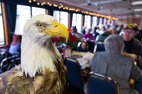 COEUR d'ALENE - As Ken Jungjohann peered through binoculars to search for the stark white heads and deep brown feathers of bald eagles sailing over Lake Coeur d'Alene on Saturday afternoon, the room around him was warm and filled with war stories and soft conversation.