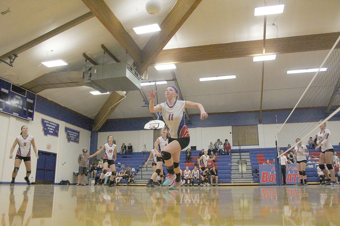 Superior Lady Bobcat McKenzie Stager chases a loose ball during the team's match against Philipsburg last weekend.