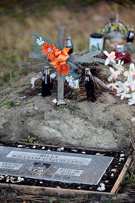 A collection of soda bottles and candy bars rests of the grave of William "Billy" G. Quilling on Wednesday, October 1, at the Fortine Cemetery south of Eureka. Quilling was born January 16, 1980 and died August 12 of last year. (Brenda Ahearn/Daily Inter Lake)