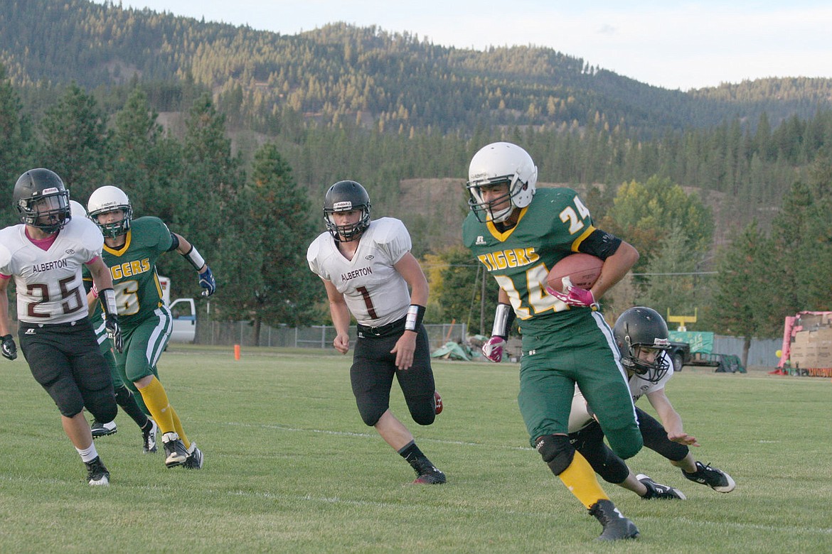 The St. Regis Tigers rush the ball against Alberton earlier in the season.