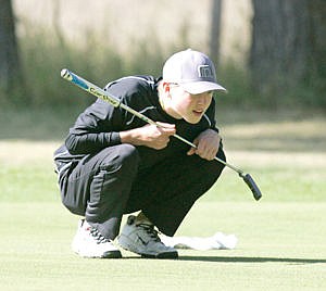 Jonny Cielak studies the green on No. 2, a 356-yard par four during Libby Invite Sept. 12