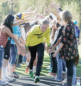 Keeper Shannon Reny was first through the tunnel after a hard-fought battle with the Wildkats that ended in a 0-0 tie Saturday at Logger Stadium.