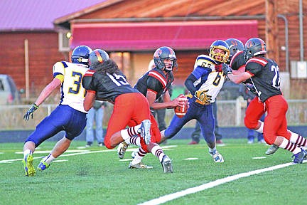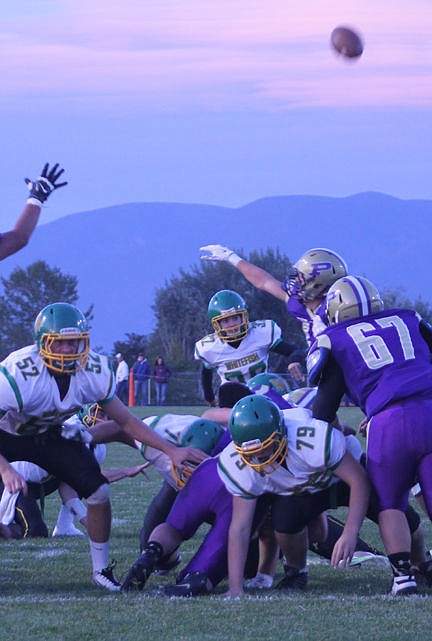 At Charlo during Homecoming, the visiting Phillipsburg area coop Titans knocked around backup quarterback Trent Dennison, sending him to the sideline for the remainder of the first half and capitalized upon his absence by finding the endzone a quartet of times before intermission. Dennison was able to return in the third period and made his presence felt connecting with Kobe Cox for six. But the Huskies countered his efforts with another score, then added insult to injury to Homecoming festivities by returning an interception for another score. Charlo (4-1) travels to Arlee for another Western division showdown.