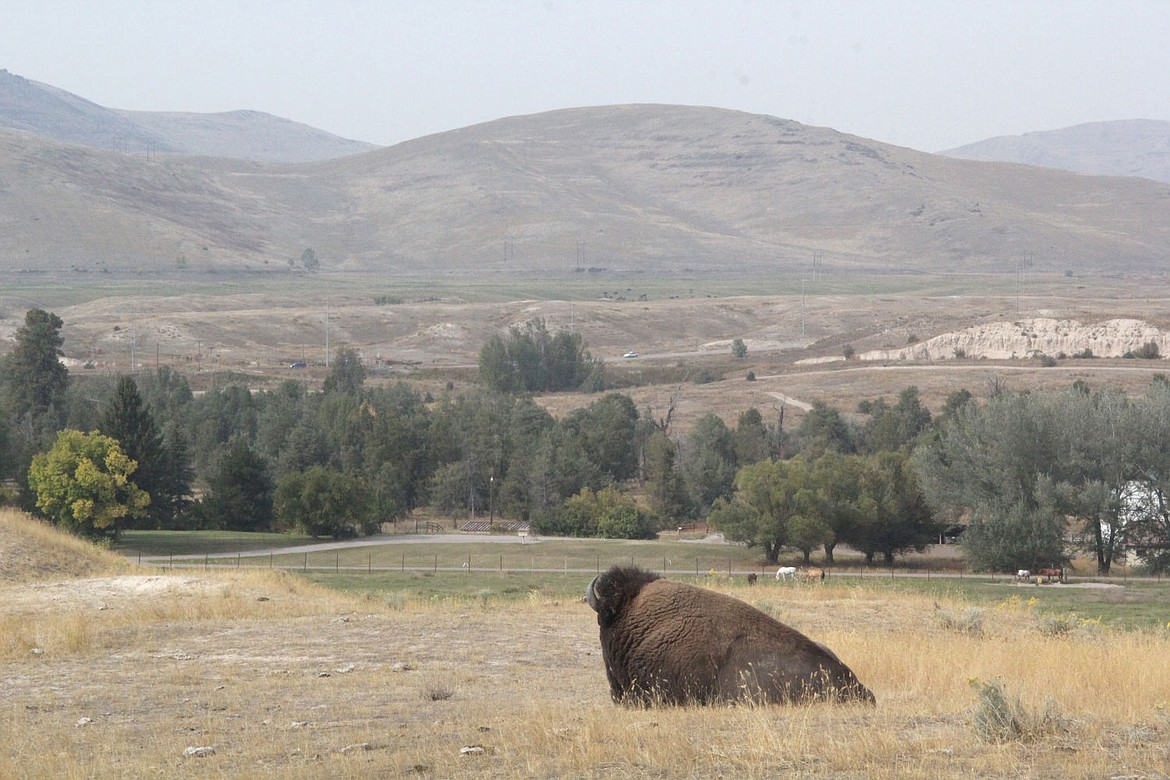 A lone bison looks out over the horizon at the National Bison Range in Moiese.