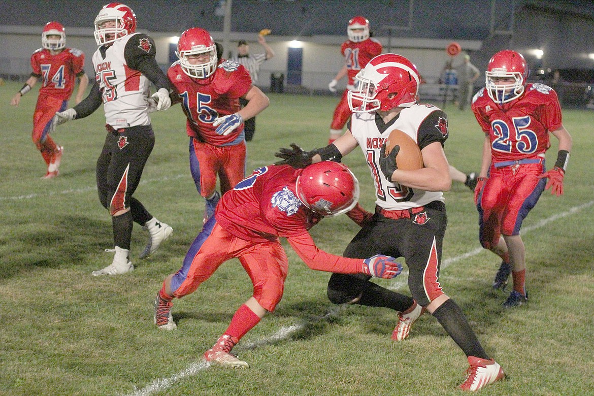 Senior running back Luke Crowe of the Noxon Red Devils shakes off a tackler during last Friday night's game in Superior.