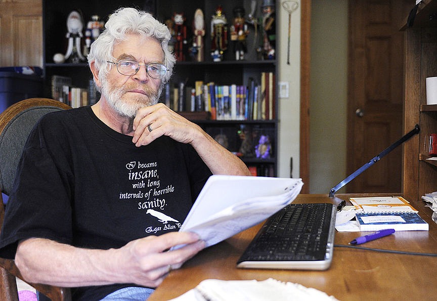 Roy Blokker transcribes poems he wrote onto the computer at his Lakeside home on Thursday. (Aaric Bryan/Daily Inter Lake)