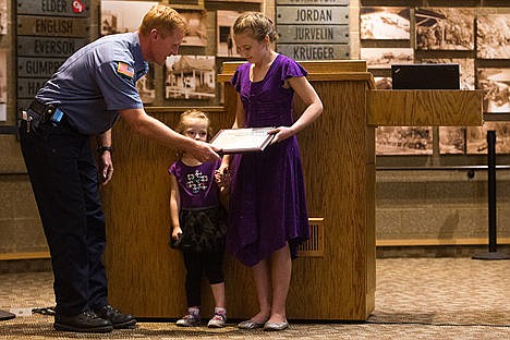 During Tuesday night's Coeur d'Alene City Council meeting, Sequoia was given a plaque honoring her heroic efforts. The plaque was presented by Coeur d'Alene Firefighter Erik Loney and Fire Battalion Chief Jeff Canfield, who told The Press that the department typically gives the awards out once or twice a year.