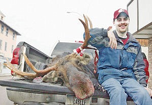 Brad Mohr is all smiles Monday morning after downing a moose in Area 101 with a 30-06. Nov. 12, 2012