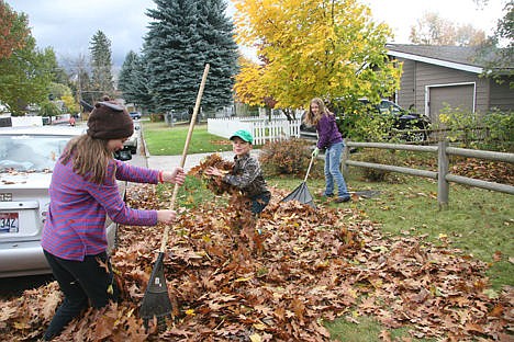 COEUR d'ALENE - When leaves weren't being lifted and blown around by the wind Sunday in the Shared Harvest Community Garden, they were being raked, scooped and tossed about by a handful of spirited youngsters.