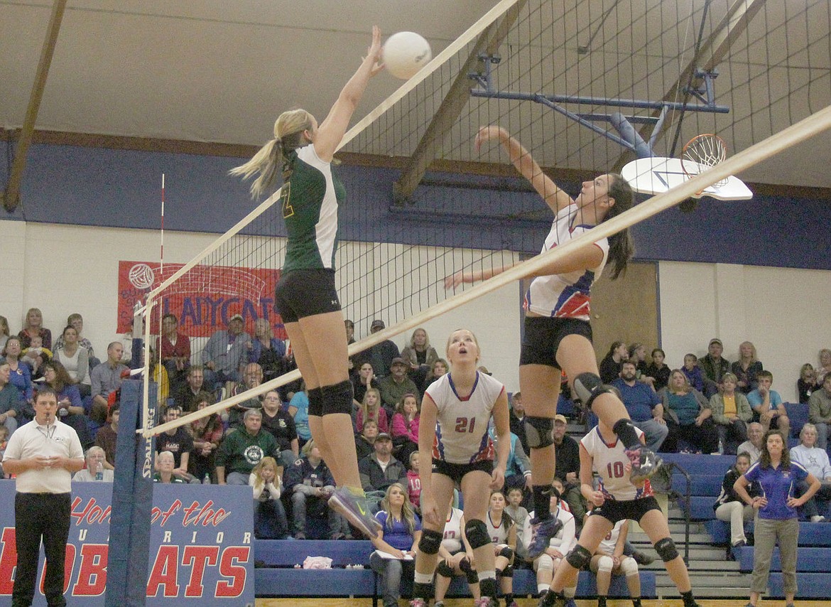 Danielle Ewounik spikes the ball on a St. Regis defender during a match last week.