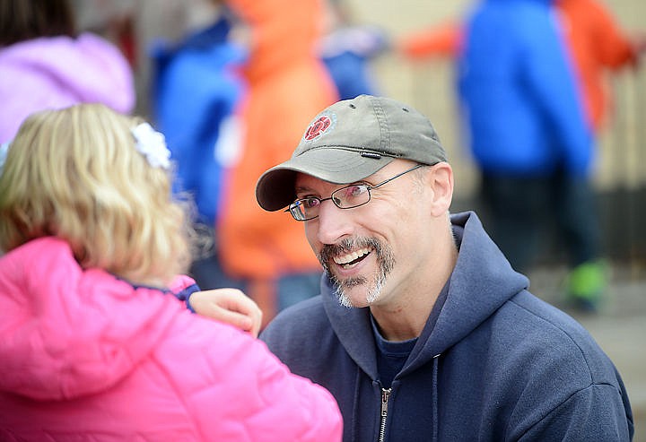 Greg Daenzer (above) and other members of the Kalispell Fire Department helped give out 150 coats as part of Operation Warm Firefighter Coats for Kids on Wednesday at Russell Elementary School in Kalispell.