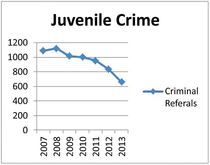 Crimes referred to the prosecutor's office and violent juveniles crimes have each dropped about 40 percent since 2008, according to the statistics.