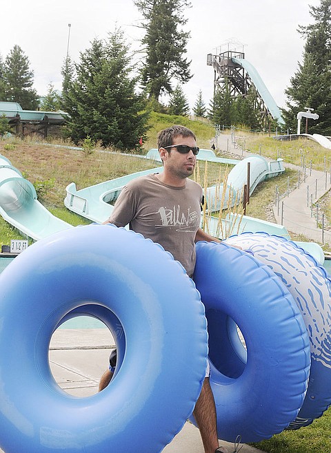 Nathan Byers takes inner tubes away from the pools at Big Sky Water Park near Columbia Falls on Tuesday. The park’s final day of the season was Monday.