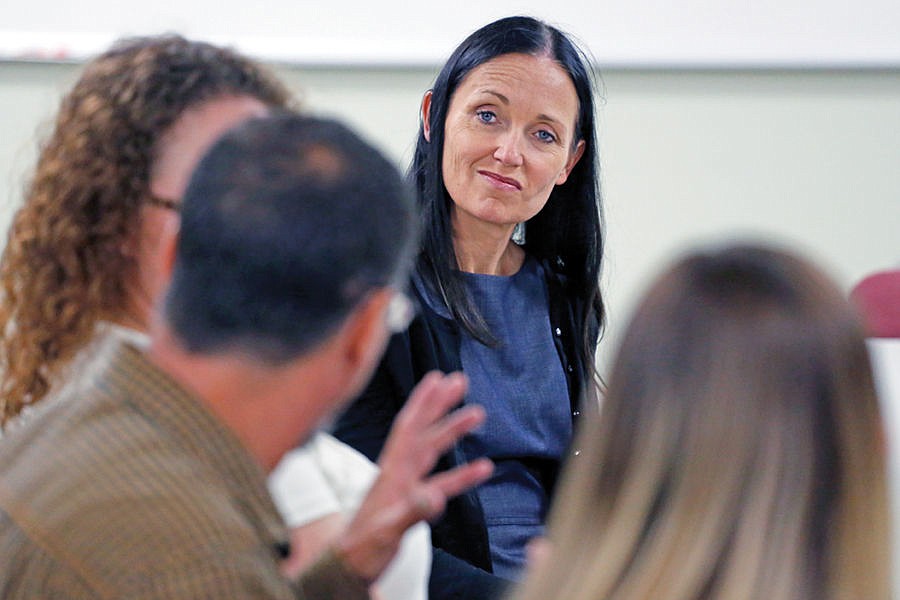 Lt. Gov. Angela McLean listens to teachers discuss the benefits of the dual enrollment program at FVCC. McLean is touring several schools in the state this week to learn about progressive programs for student success in Montana public schools.