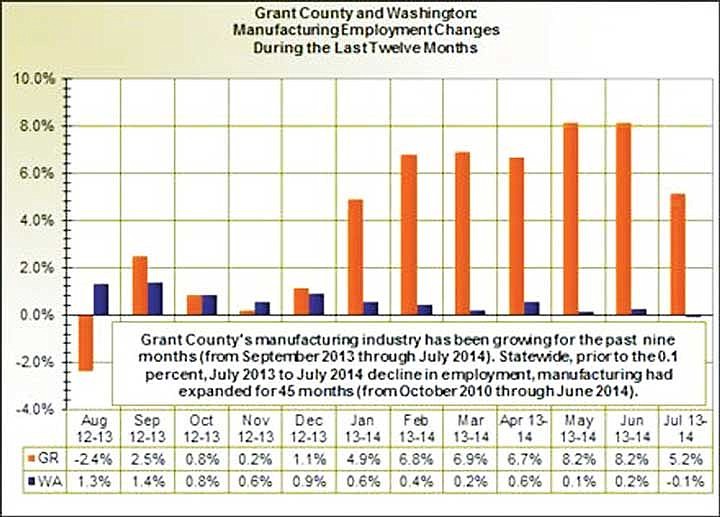 "This July, nonfarm employment increased 1.8 percent since July 2013, a step in the right direction for Grant County following year over year losses in April, May and June 2014," read the report.
