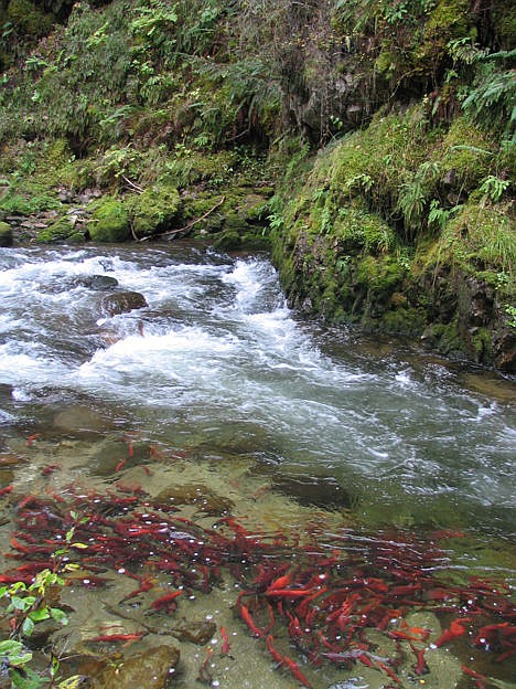 While the autumn sky is filled with the colors of changing leaves, so are many small Idaho streams filled with the color of spawning kokanee salmon.