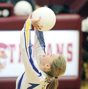 Senior Hannah England setting in second game vs. Troy 9-2-14