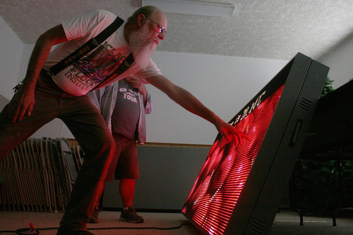 St. Regis Community Council Secretary Glenn Koepke points out burned out LED bulbs on new signs or reader boards which will be installed soon.