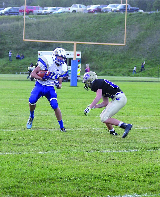 Trais Hoisington plans his next step during the Thompson Falls football game against Cut Bank.