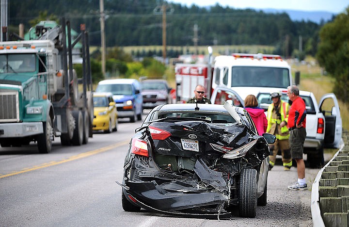 Scene of a multiple vehicle wreck on Highway 83, near Bigfork on Friday afternoon, September 12. (Brenda Ahearn/Daily Inter Lake)