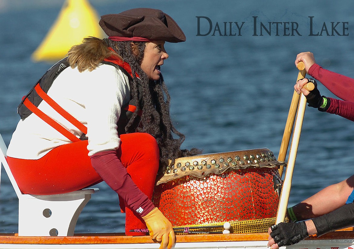 <p>Jessi Way, the drummer for the Riveting Rosies, shouts out orders during a race at the Montana Dragon Boat Festival.</p>