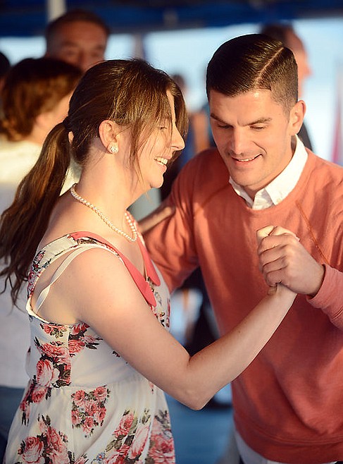 Faith Dawson of Polson dancing with Pete Milne of Kalispell at North End Swing's third annual Smooth Sailing event on Saturday, August 13. (Brenda Ahearn/Daily Inter Lake)