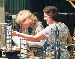 Libby's Jana Murchie, left, and her sister Karla Yungk visiting from south Florida, look over the jewelry of Tamarack Mountain Design at the craft show Saturday.