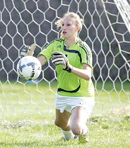 Nice save by sophomore keeper Abby Ennenga on a penalty kick in first half vs. Laurel Friday.