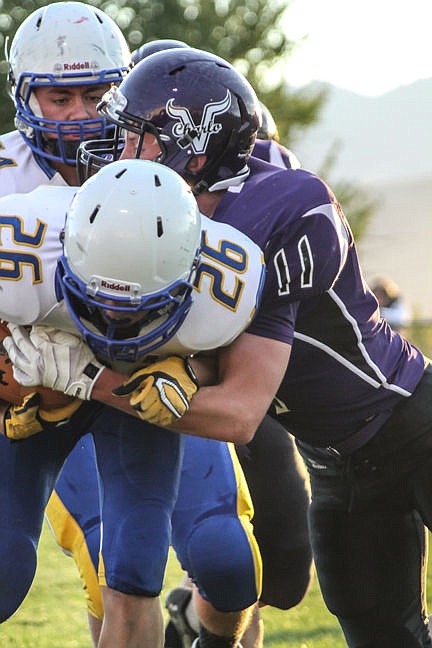 CHARLO – The host Vikings bombarded the visiting Pirates in a Western C grinding on the 8-man gridiron. Quarterback Michael Delaney was deuces wild in the win, throwing for a pair of TDs, another pair of 2pt tosses and running it in himself for another two scores, one for six and the other for a deuce. The Vikings have already surpassed the century threshold for points scored against opponents only two games into the young season. Next on the Charlo (2-0) agenda will be road game against the Seeley Swan Blackhawks this Friday.