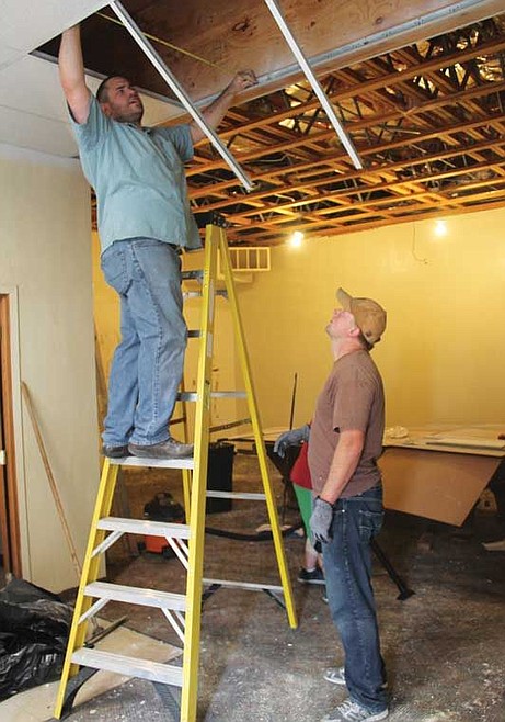 A group of store employees volunteered their time and skills this week to work on the project, which involved installing new ceiling tiles and painting in the lodge's back lounge area. Home Depot also gave the Elks money to use for paint and various building materials.