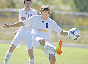 Freshman Tyler Lucas on a pass from Bryant Reis first half vs. Whitefish 9-20-14.