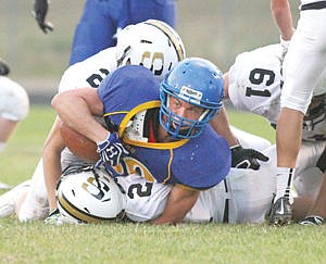 The Loggers were first on the board in the final minute of the first quarter when running back Zach Crace rumbled in from four yards out. The 25-yard scoring drive was set up when sophomore linebacker Brandon Sadewasser sacked and stripped Yellowjacket quarterback Bryce Torrey. Senior Logger lineman Michael Curtiss fell on the fumble and six plays later Libby was up 8-0.