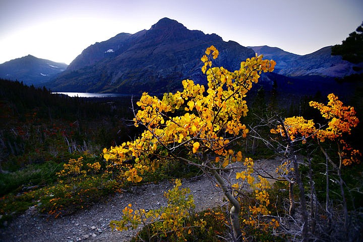 Fall foliage adds a pop of color to Scenic Point Trail on Sept. 20, in Glacier National Park. In the background is Two Medicine Lake. The trailhead is located 2.7 miles west of the Two Medicine entrance station.