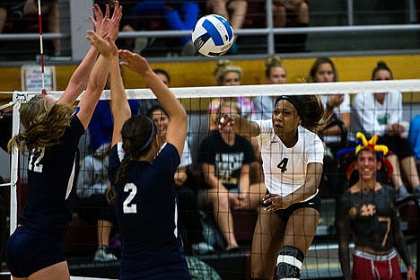 Brenna Meehan, a freshman outside hitter from Post Falls High, forcefully put away her sixth kill of the fifth game - and team-leading 21st kill of the match - off the arms of Melissa Judd of the Golden Eagles, for the go-ahead lead at 16-15. Meehan's fifth kill of the game began the rally.