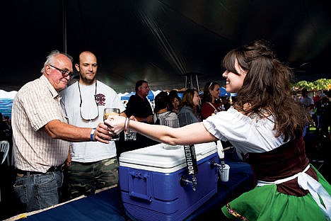 Shara Fouts of Coeur d’Alene wore a traditional German beer maiden dirndl dress as she poured Odell’s 90 Shillings and Ninkasi beer at the festival.
